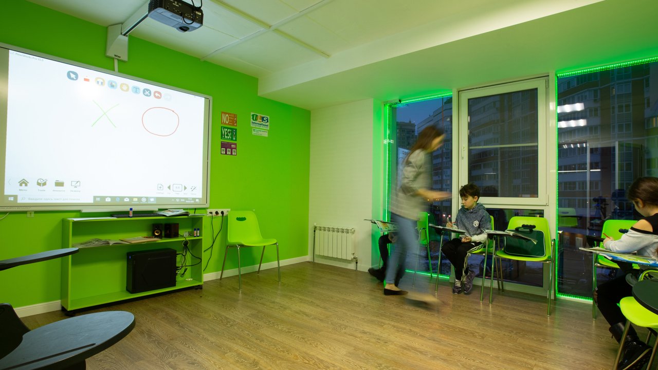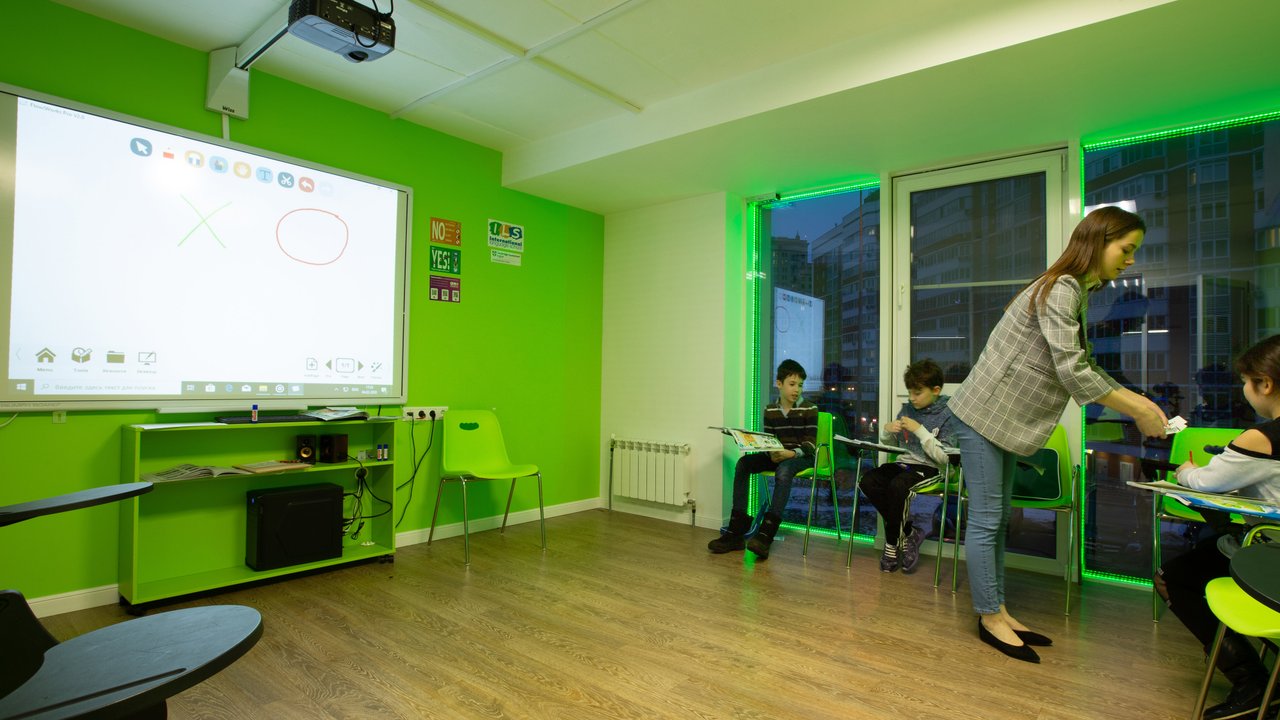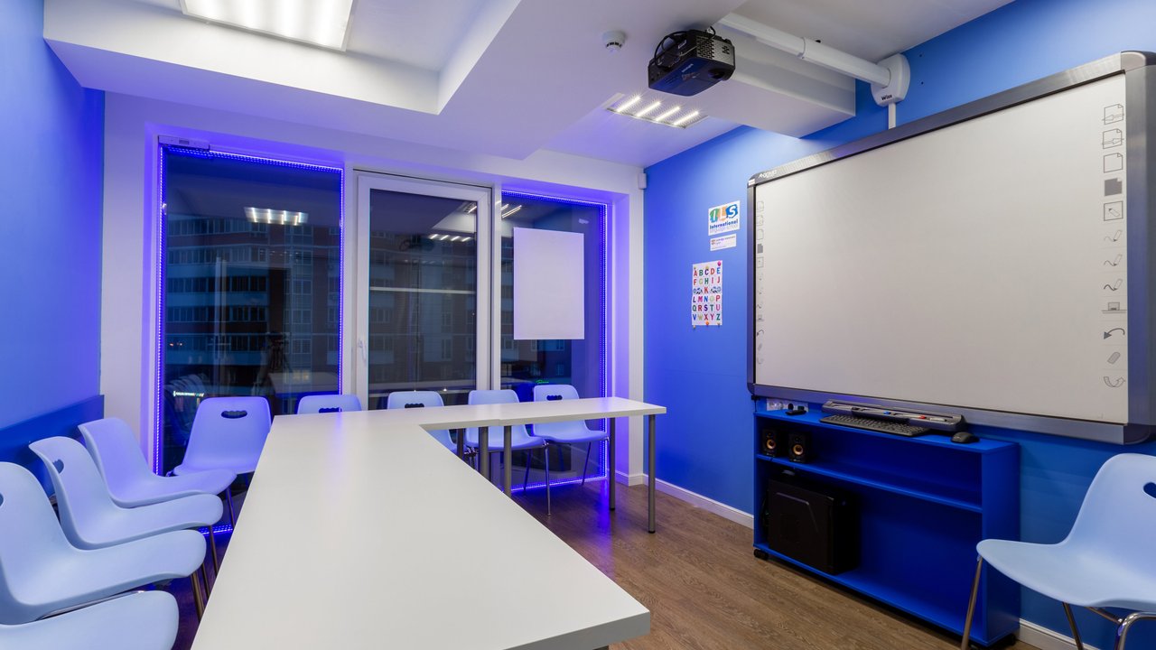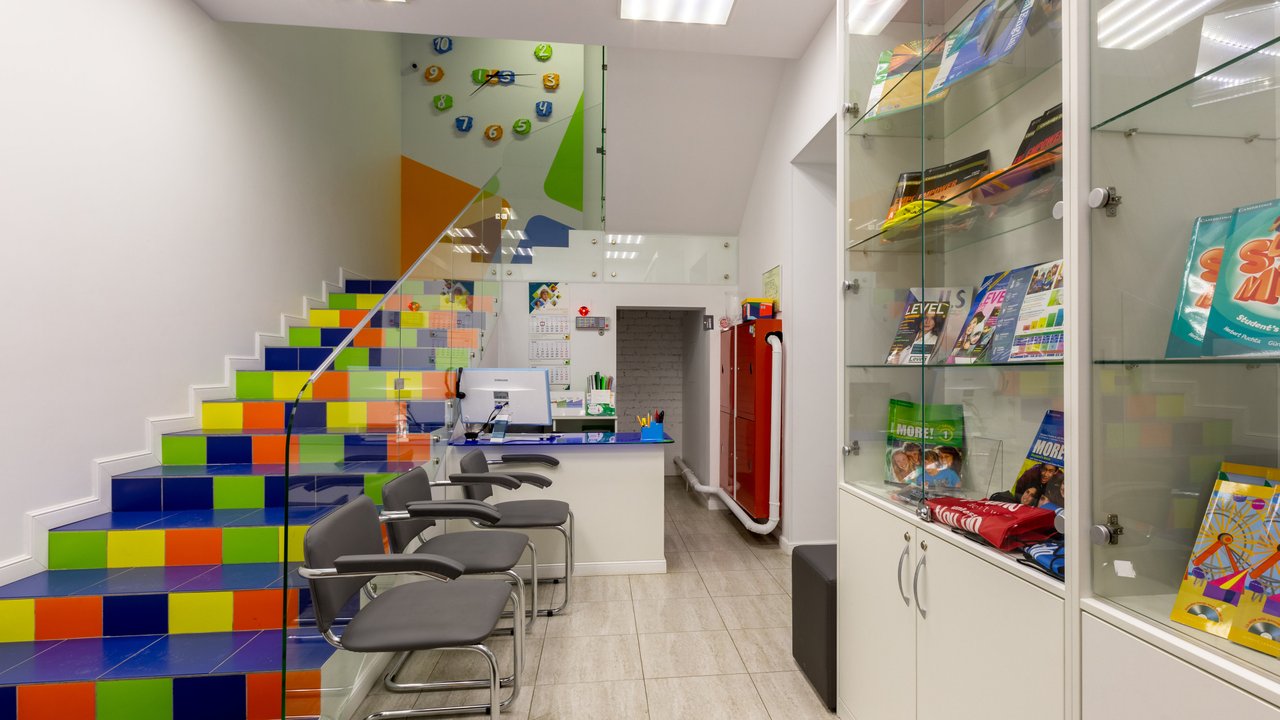 Школа очень красивая. Ребенку понравились занятия. Все было на английском