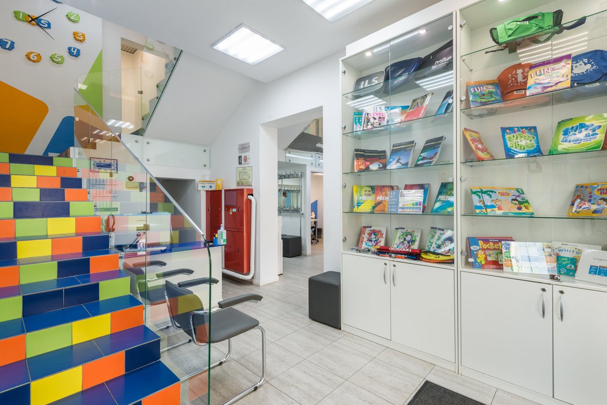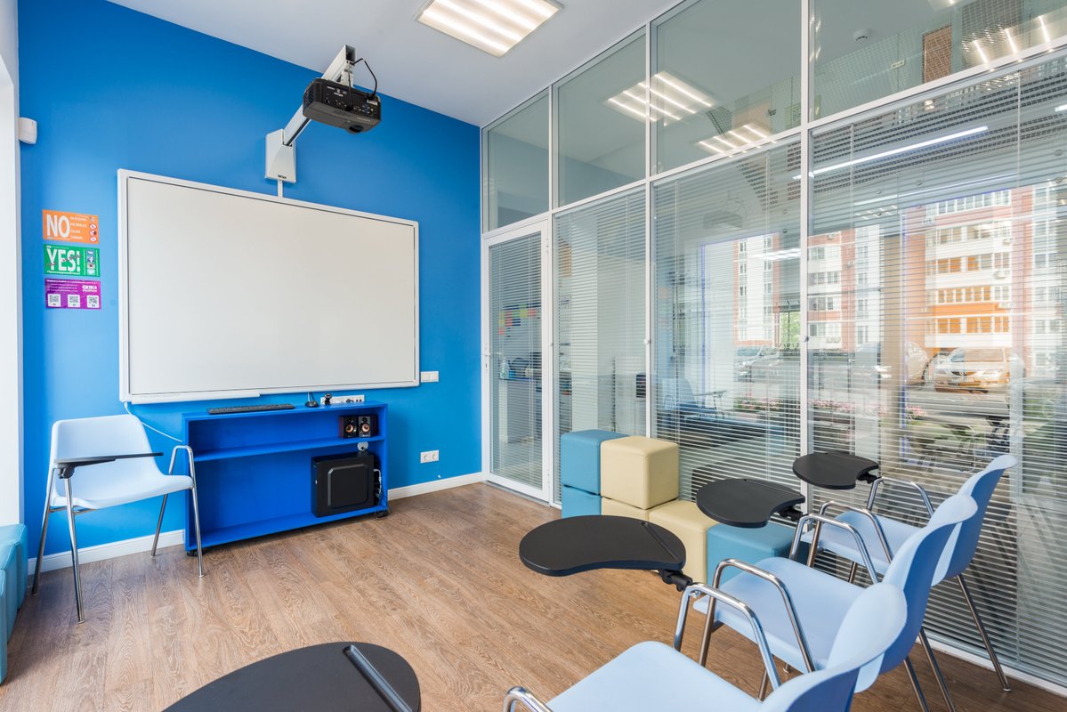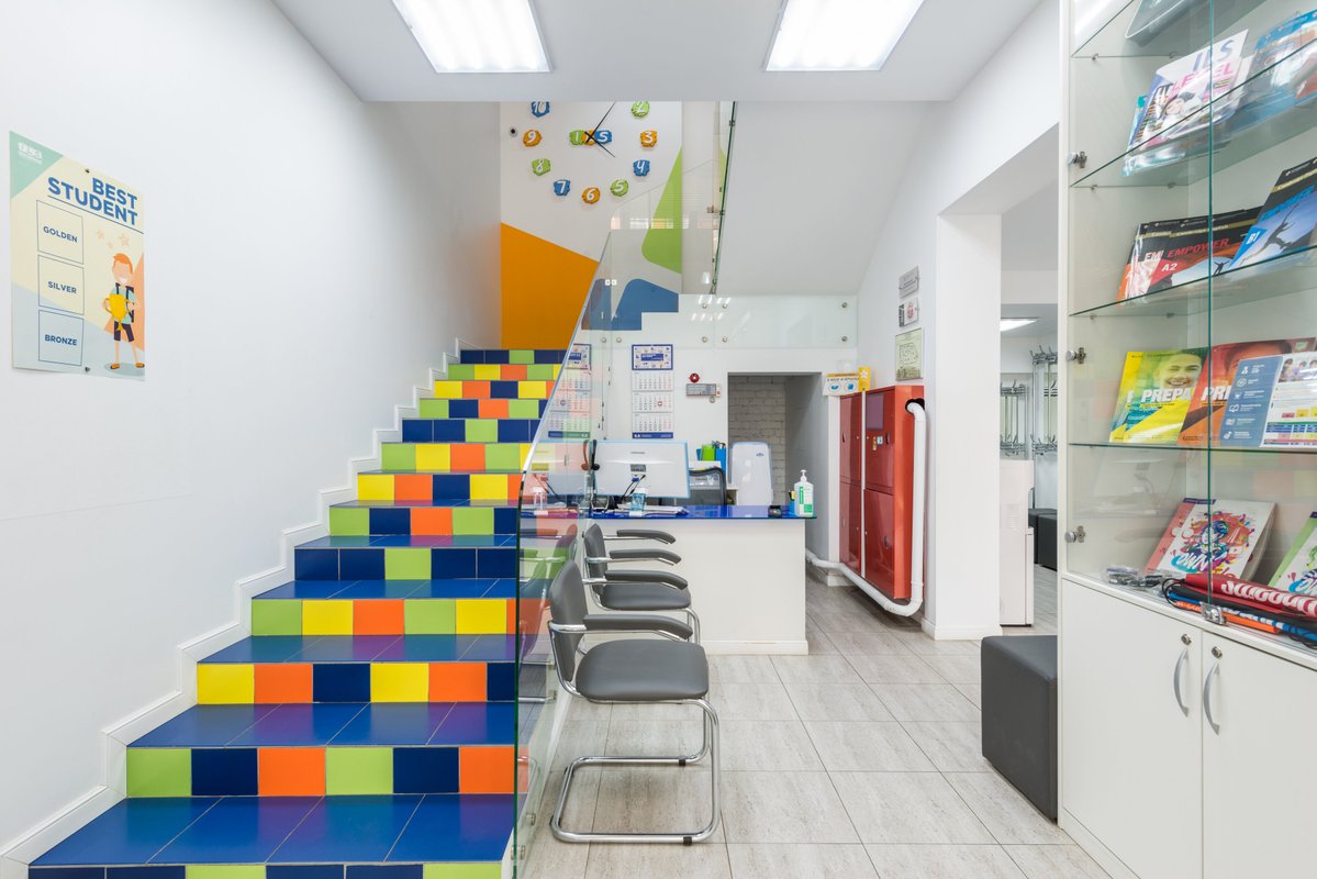 Школа очень красивая. Ребенку понравились занятия. Все было на английском
